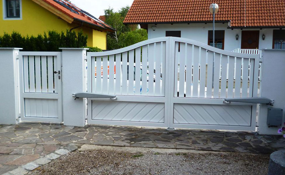Zweiflügeliges Drehtor mit waagrechten Rundlamellen (Bild 22109)