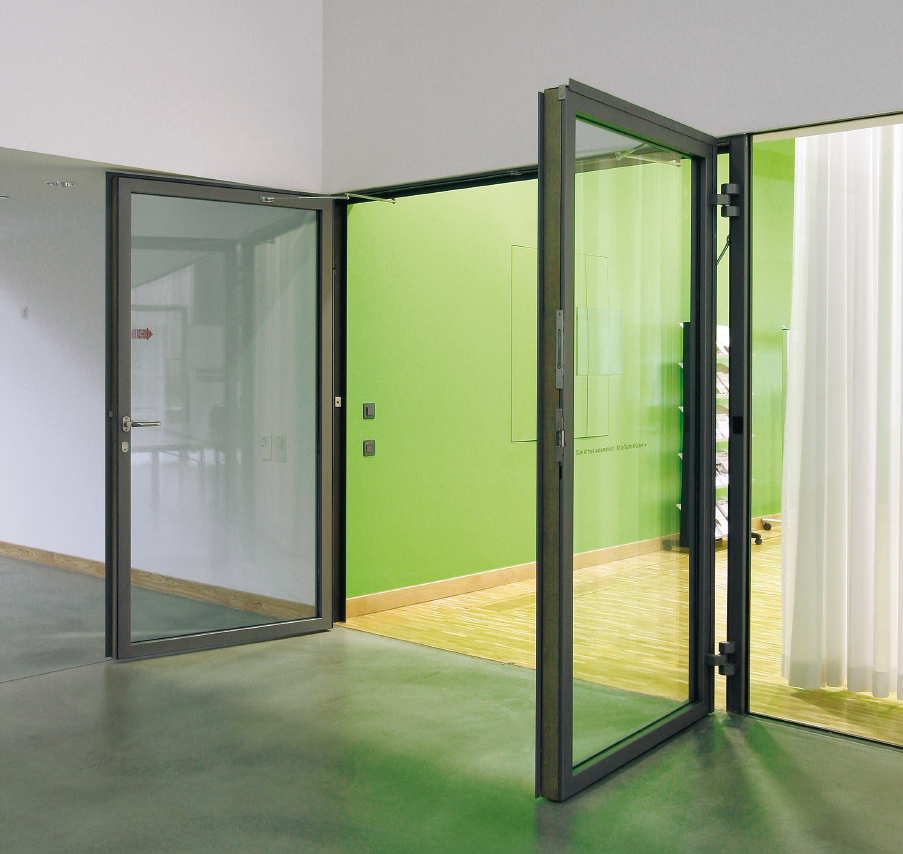 bietet hohe Sicherheit für unbehinderte Evakuierung dank mechanischer Break-Out-Funktion, «Factory Integrated Safety» mit Aktivierungs- und Überwachungssensoren, elektromechanische Zweipunkt-Verriegelung, Panik-Öffnung mit Panikdruckgriff, auch in verriegelter Position sowie eine äußerst stabile Konstruktion